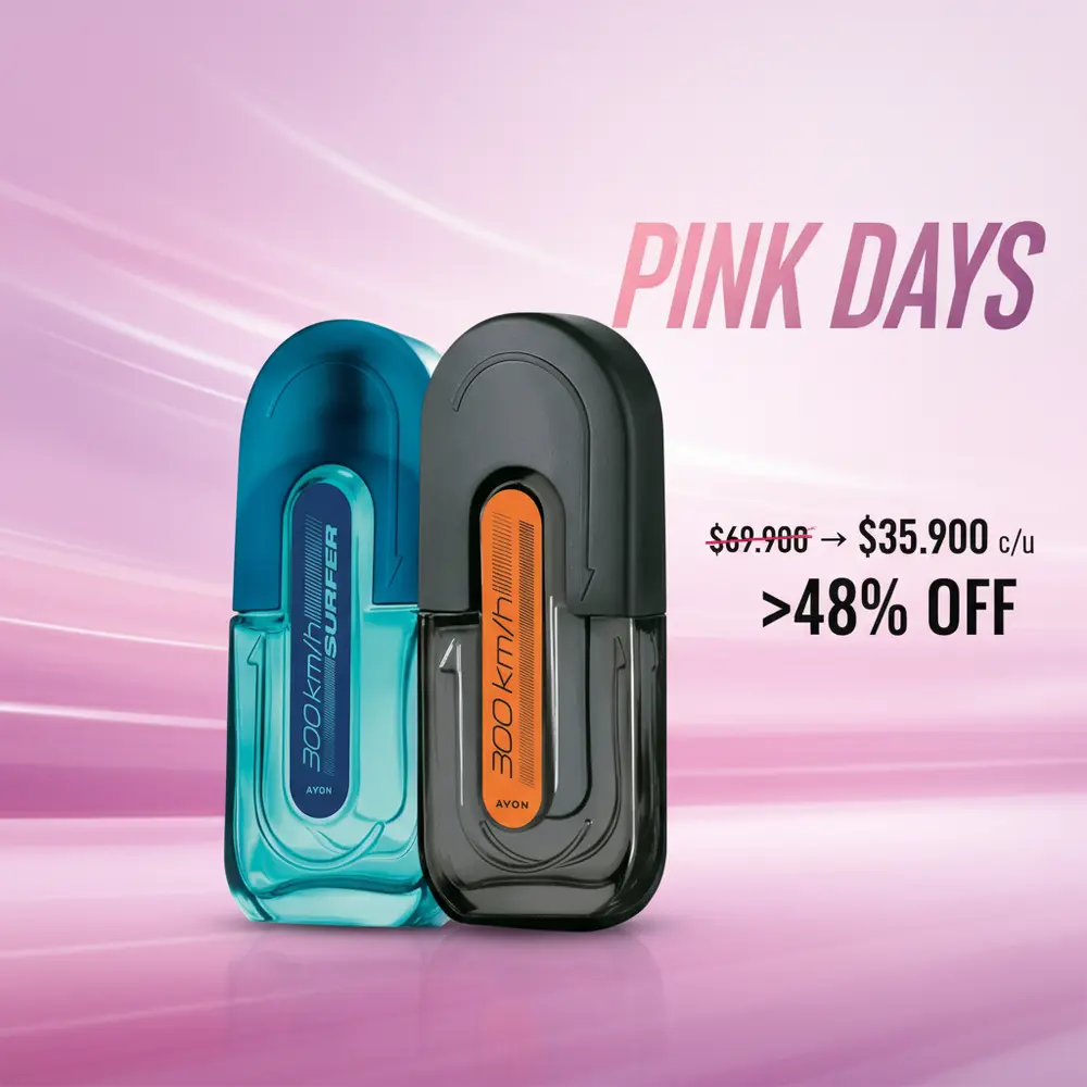 Avon y 300 Km/H son marcas registradas de Avon Products, Inc. Producto original importado del catálogo oficial de Avon Campaña 6. La duración de la fragancia puede variar según tipo de piel, clima y aplicación. Producto bajo catálogo – tiempos de entrega sujetos a disponibilidad del proveedor. Precio promocional válido durante Campaña 6.