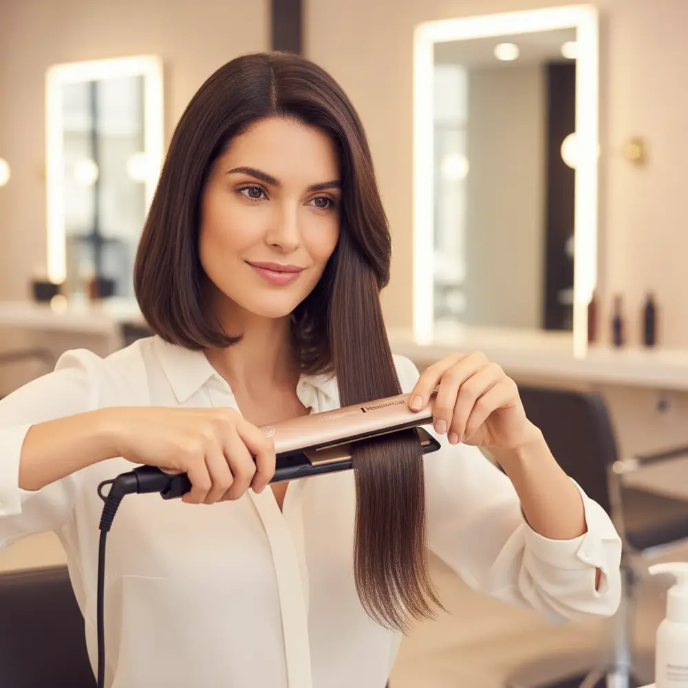 - Plancha lentamente: Pasa la plancha desde la raíz hasta las puntas en un movimiento suave