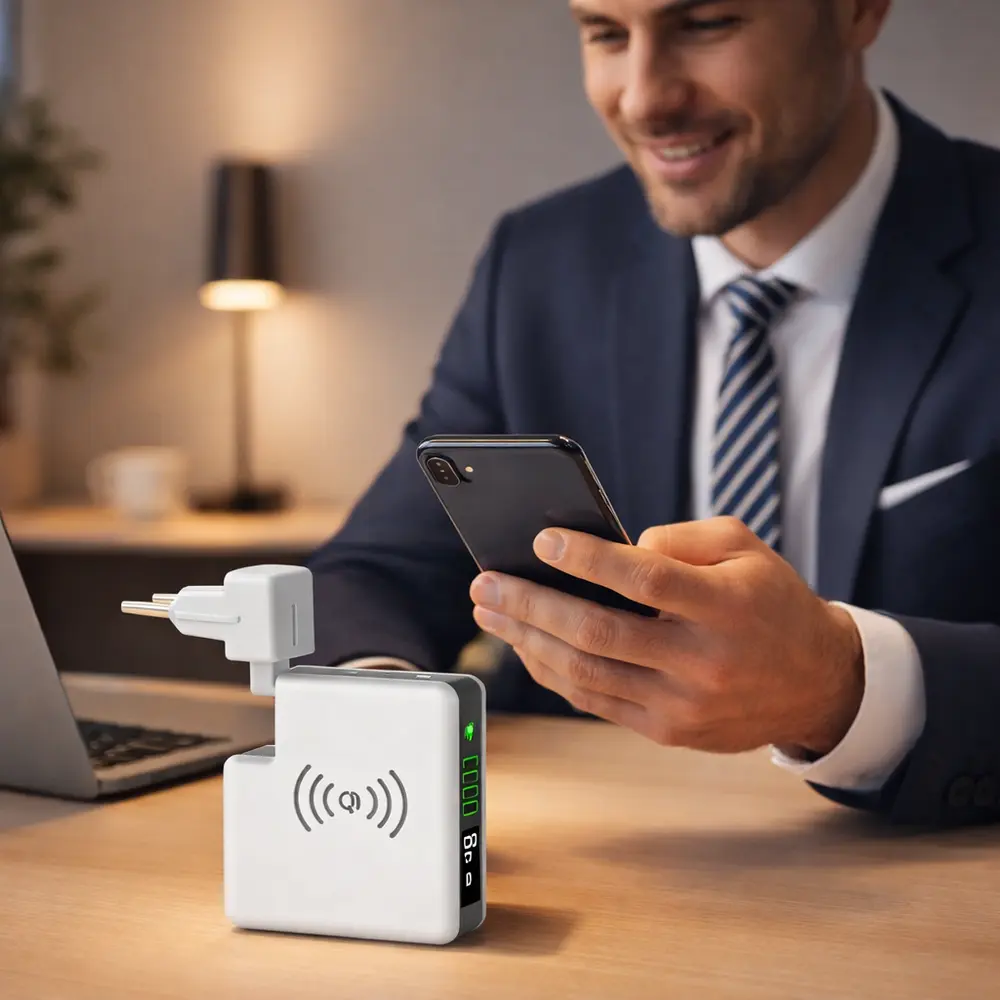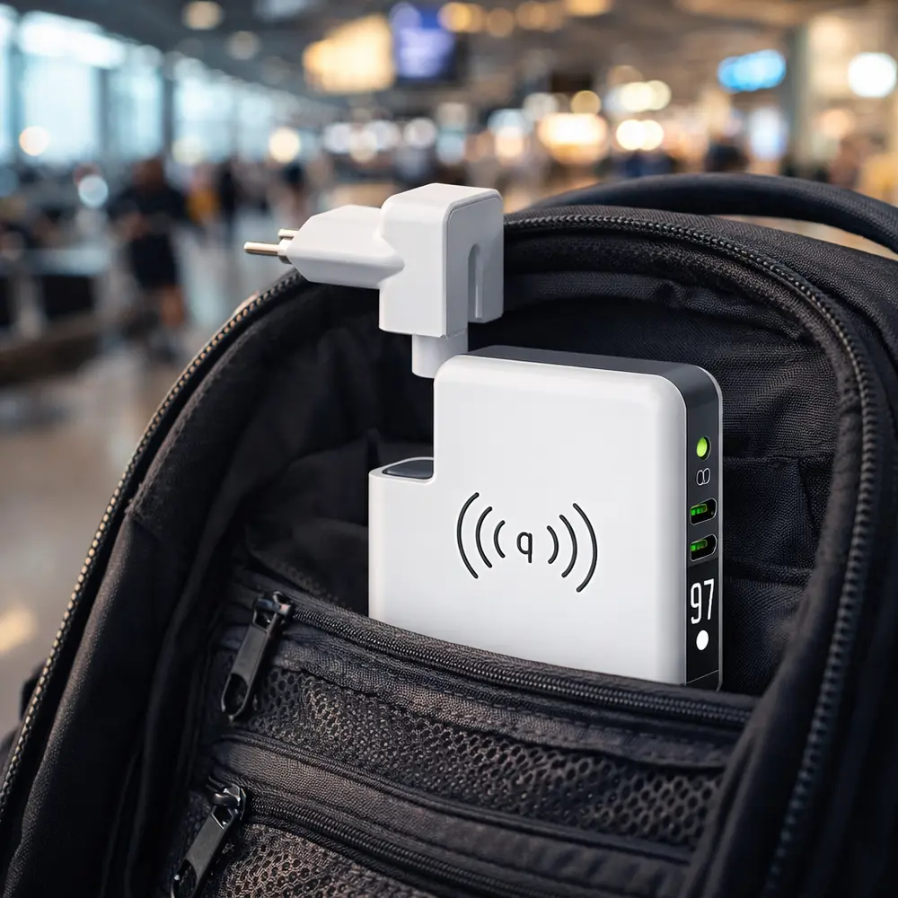 Imagina esto: estás en el aeropuerto, a punto de abordar un vuelo internacional. Tu teléfono está al 5%. Tu tablet murió hace una hora. Los audífonos Bluetooth necesitan carga urgente. Y no hay ningún enchufe disponible.