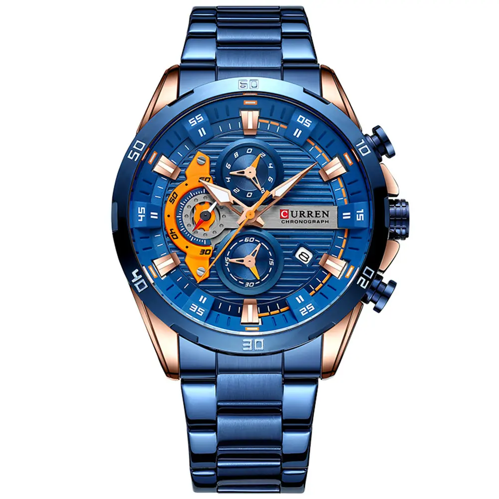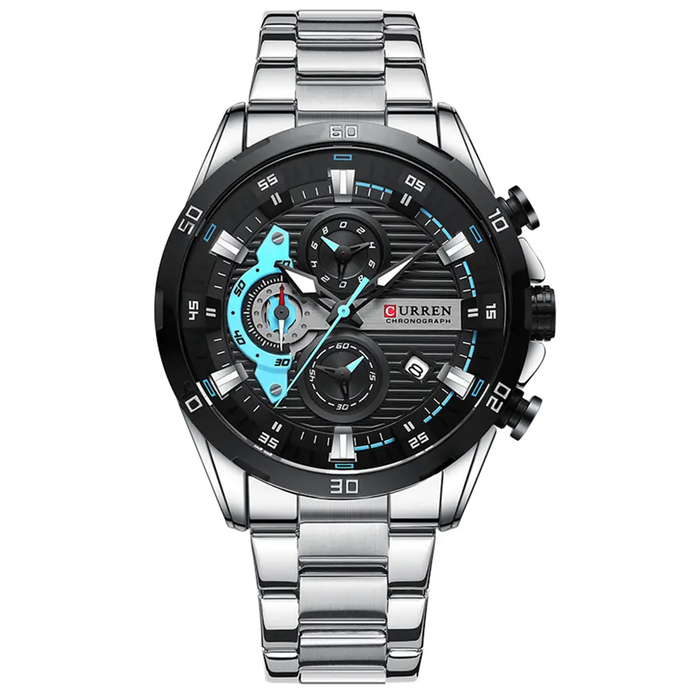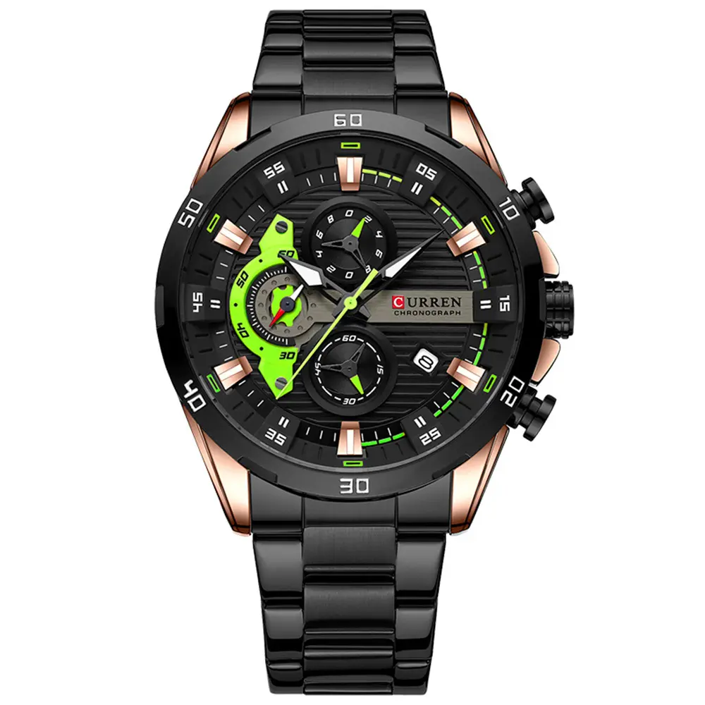 El Reloj Curren 8402 combina diseño contemporáneo con características funcionales: cronógrafos precisos, calendario integrado y manecillas luminosas, todo en acero inoxidable resistente para acompañarte en tu día a día.